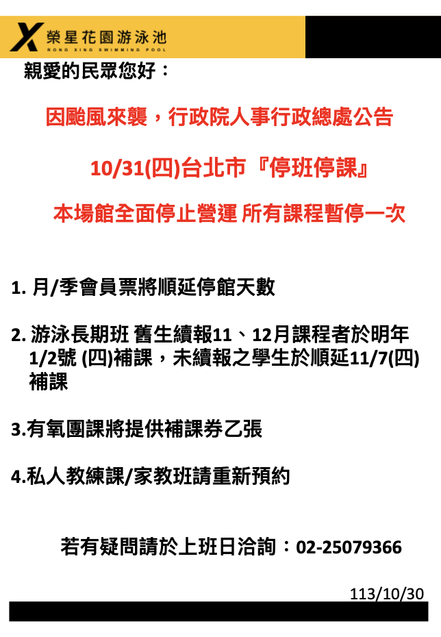 【課程】 榮星花園游泳池【11-12月游泳長期班】熱烈招生中!